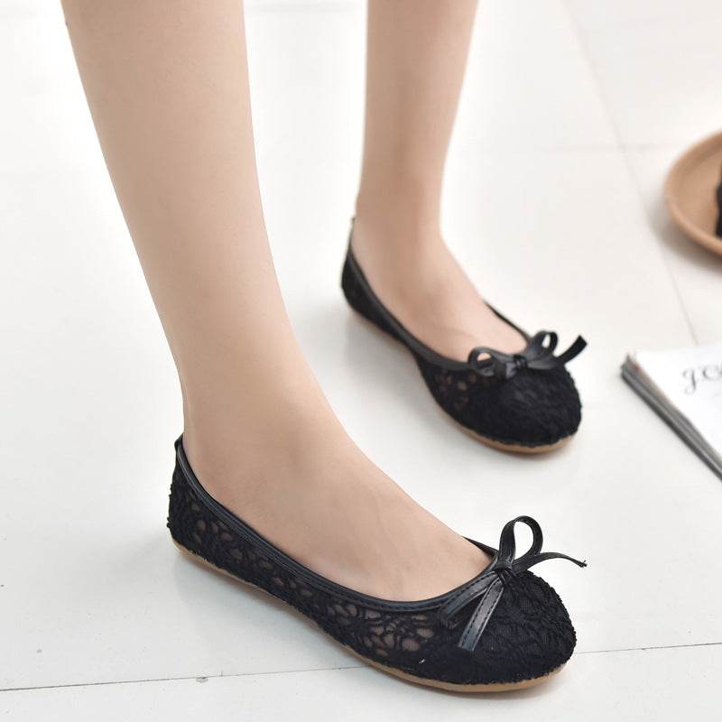 Ladies Mesh Lace Hollow Bowknot Work Shoes