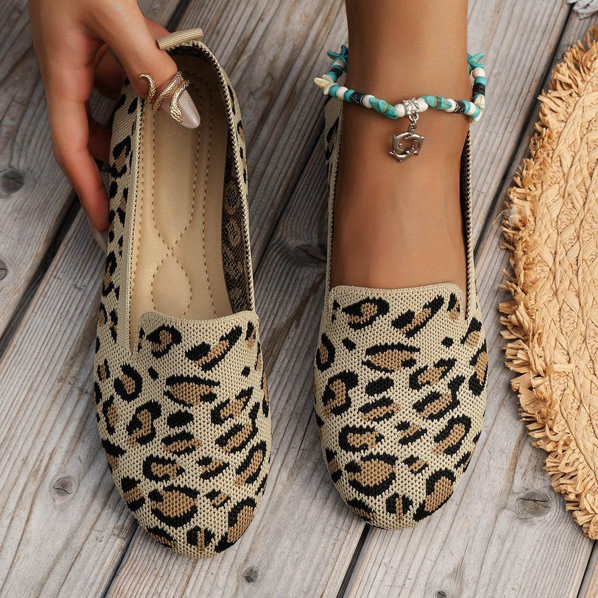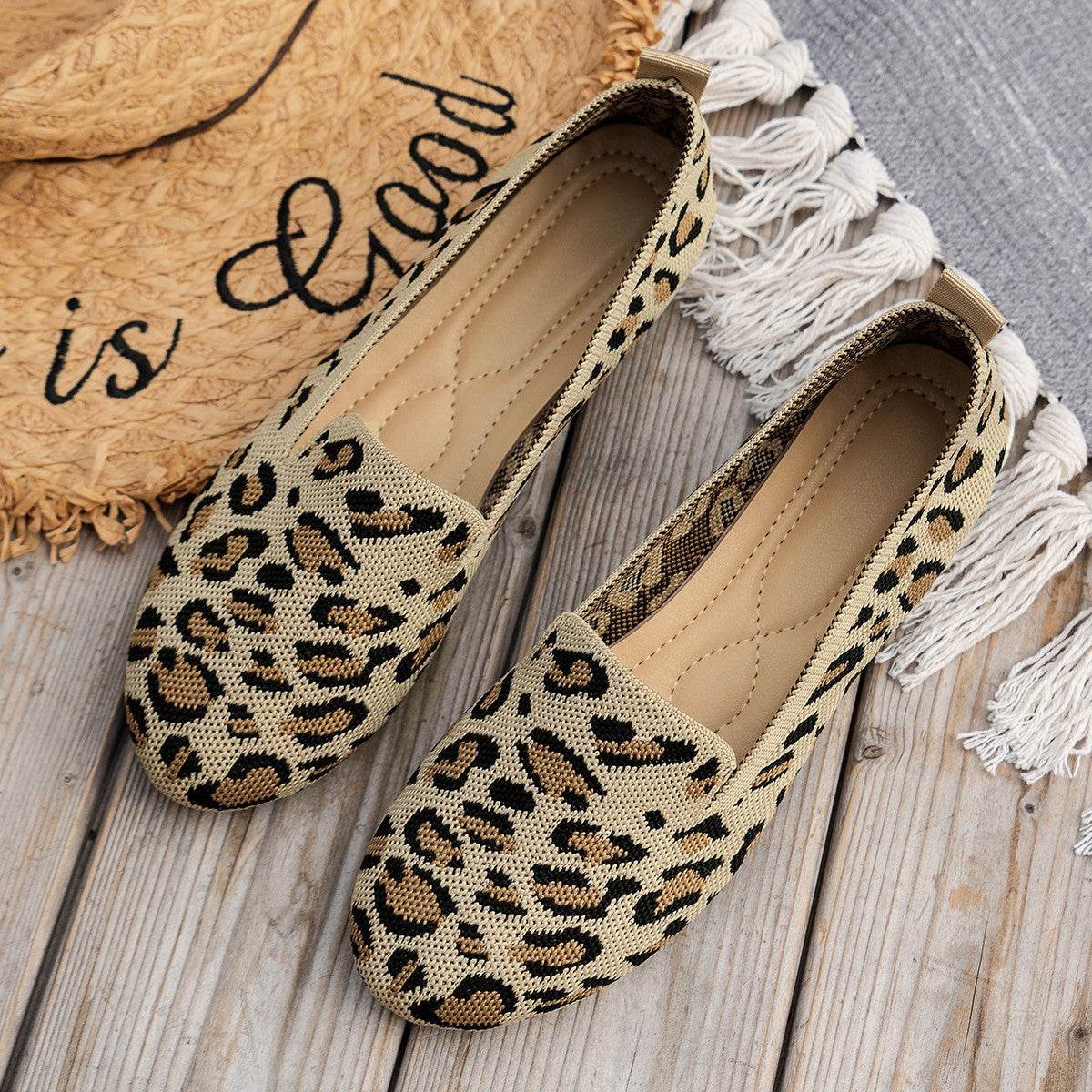 Slip-on Leopard Print Round Toe Flat Bottom Work Shoes