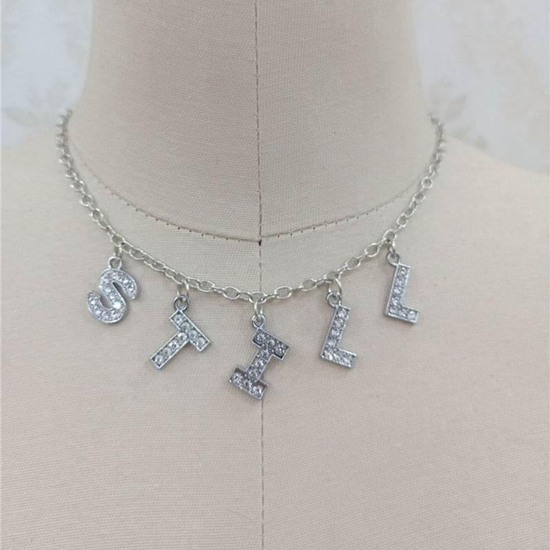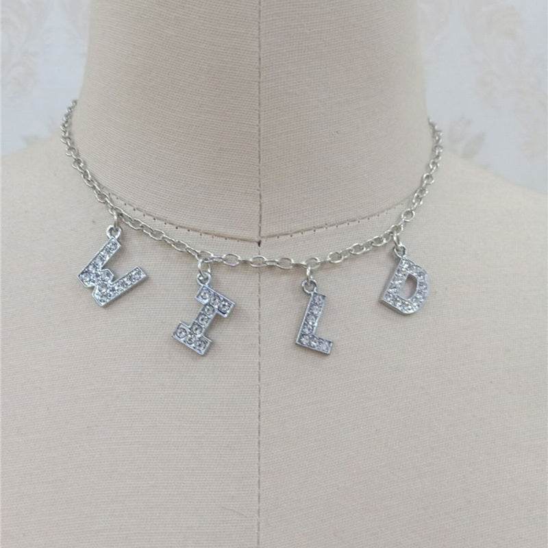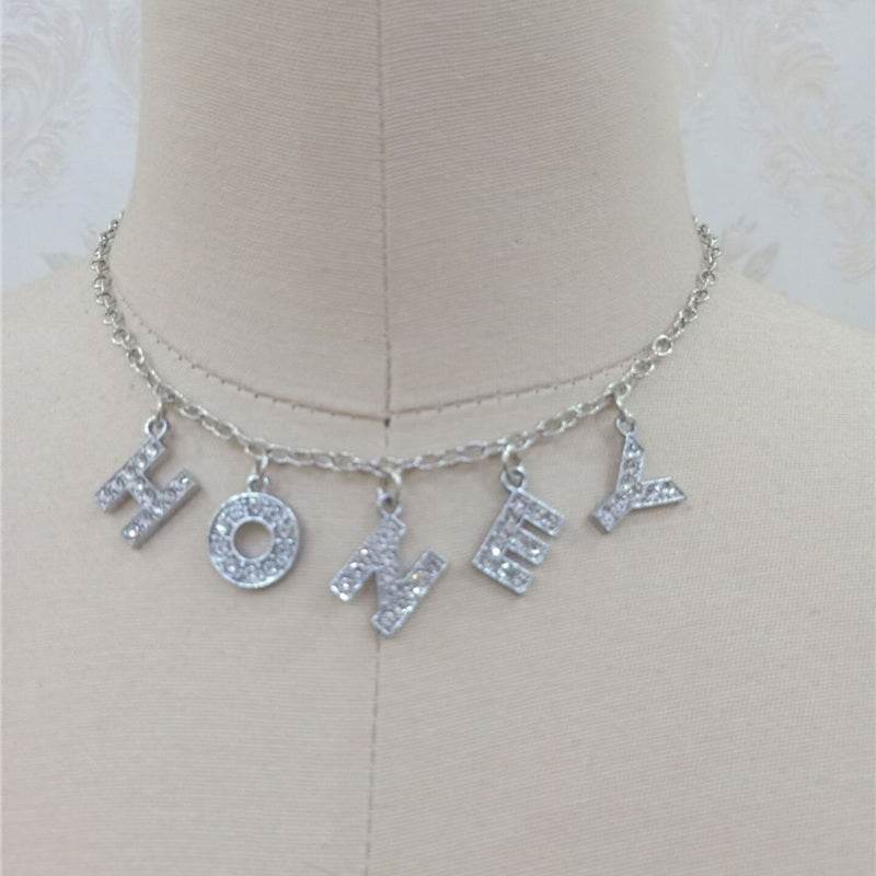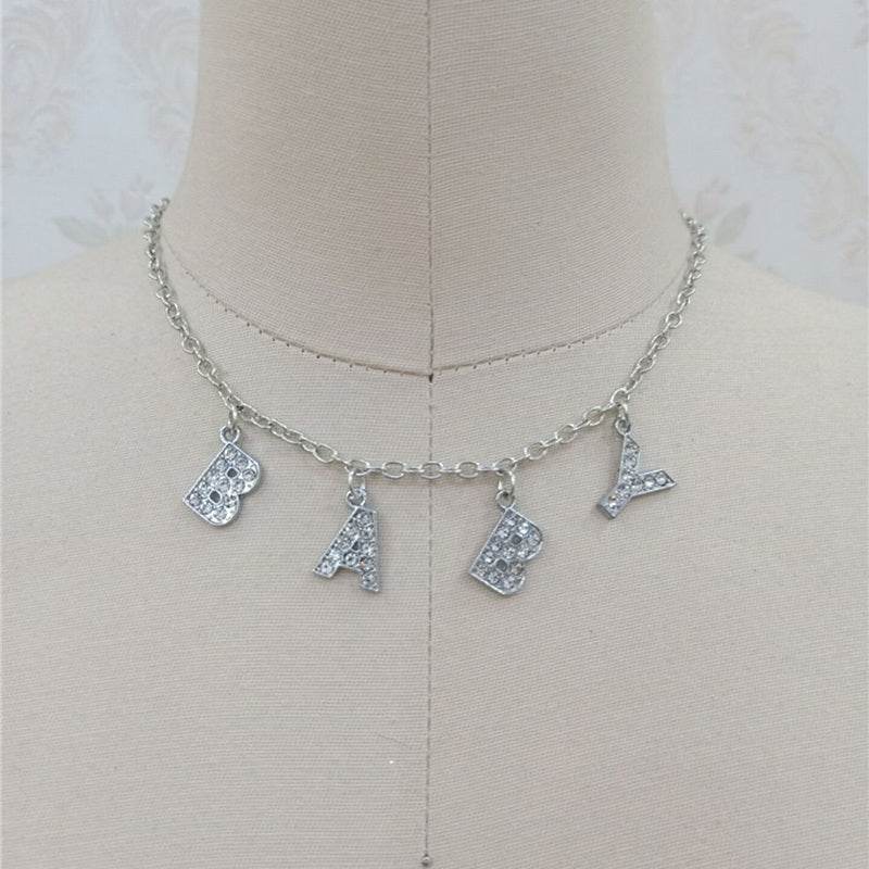 Fashion Bitch Angel Baby Daddy Rhinestone Letter Necklace Choker For Women