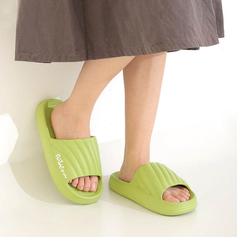 Solid Stripe Thick-soled Slippers Summer Non-slip Floor Bathroom Home Slipper For Women Men's House Shoes