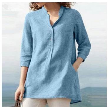 Casual Stand-up Collar Loose Blouse - Mubimart