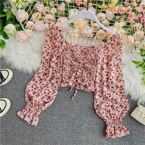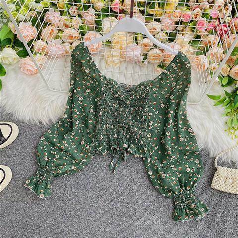 Sweet Square Neck Blouse Floral Chiffon Shirt Women