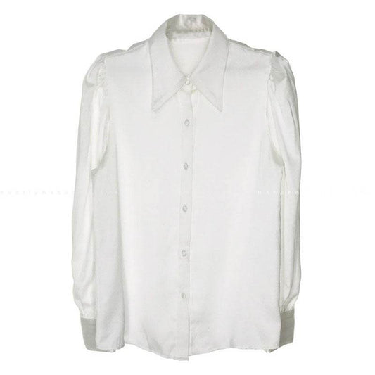 Lapel Single-breasted Loose Casual Lantern Sleeve Shirt Blouse Women