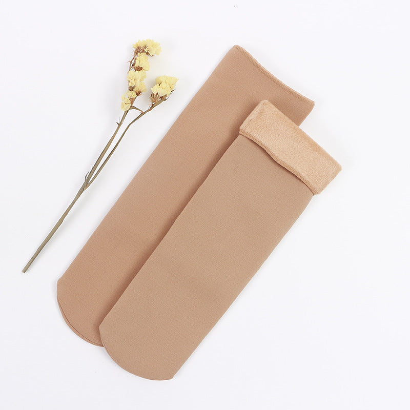 Autumn and winter socks men and women wild tube socks imitation nylon floor socks plus velvet thick snow socks