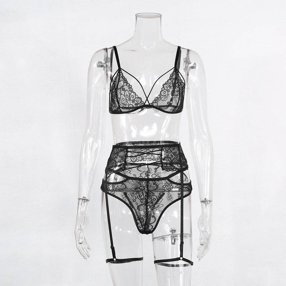 Three-Piece Sexy Lace Hollow Perspective Garter Belt