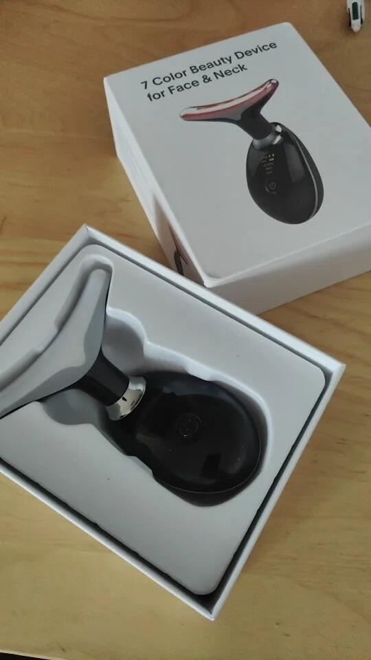 Neck Face Beauty Device Colorful LED Photon Therapy Skin Tighten Reduce Double Chin Anti Wrinkle Remove Lifting Massager - Mubimart