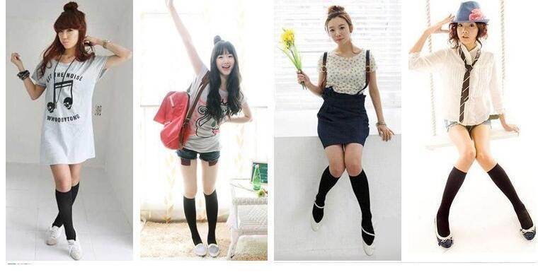 Black Medium Thigh High Socks Calf Socks Female Knee Length Socks
