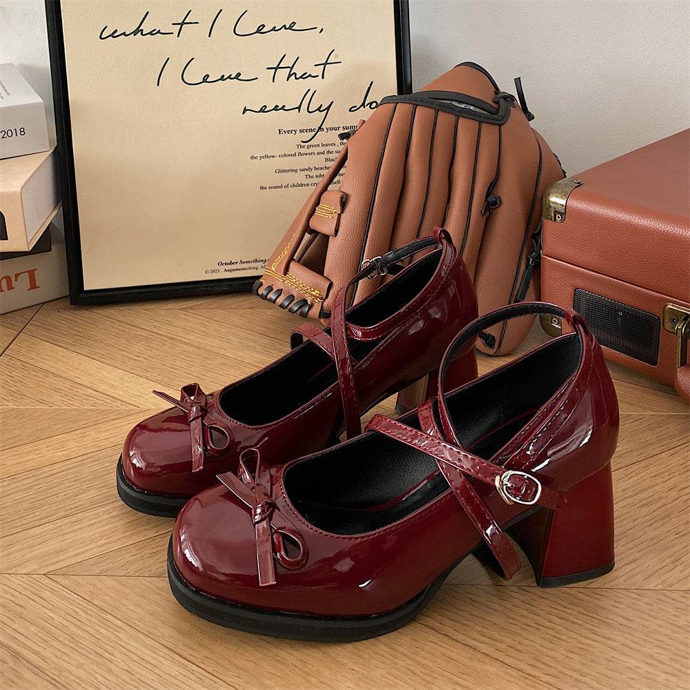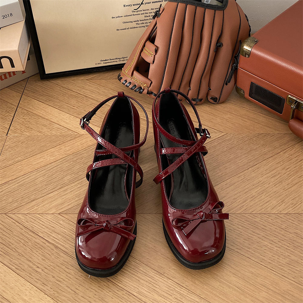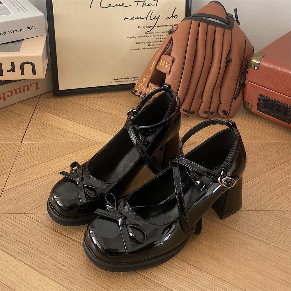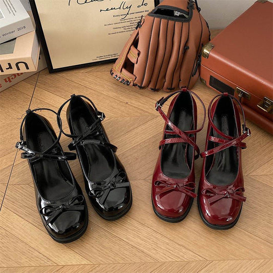 Women's Cross Mary Jane Bow High Heels - Mubimart