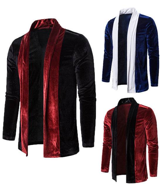 Ouma Mens Placket Hit Color Personality Jacket Cardigan Jacket