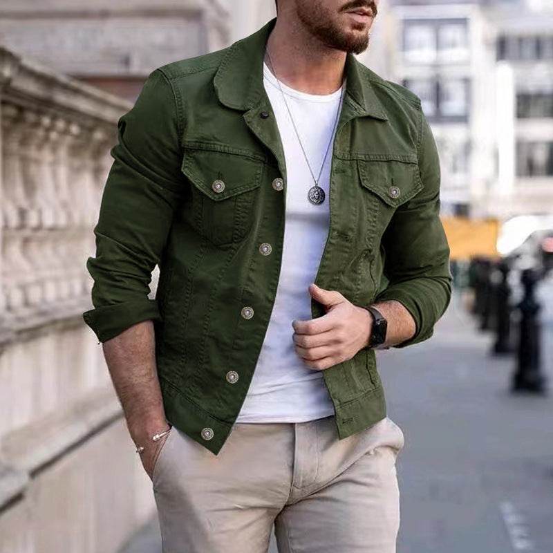Mens Slim Fit Denim Lapel Jacket - Mubimart