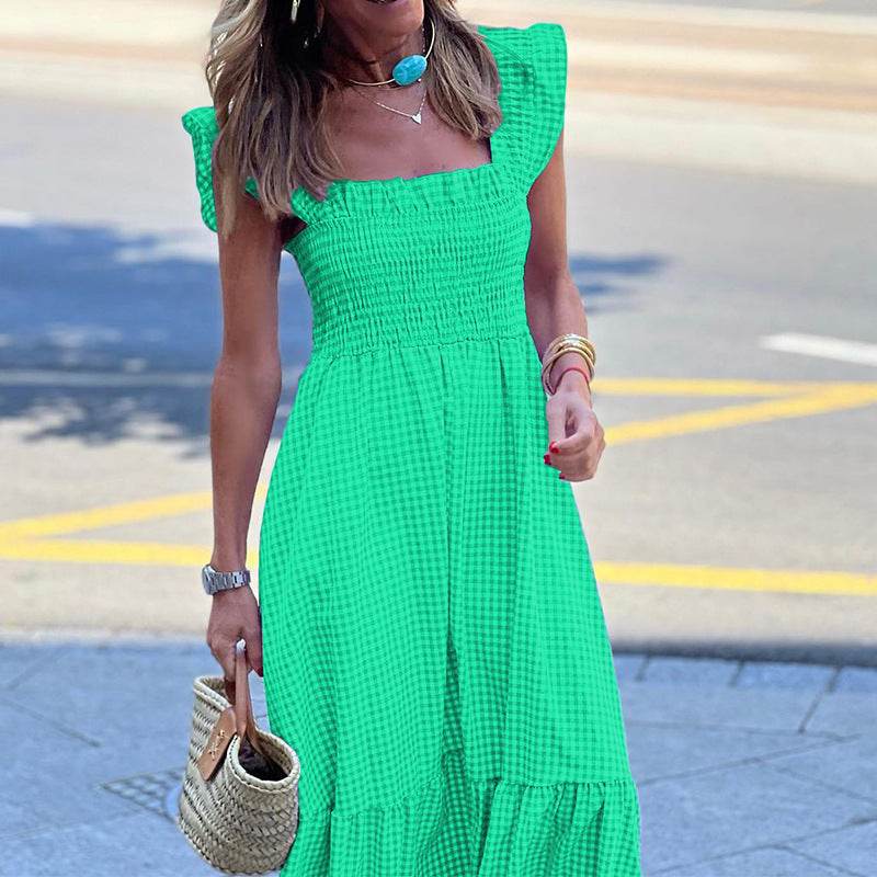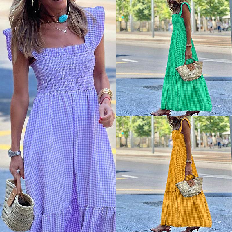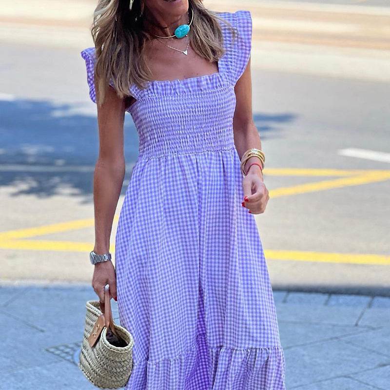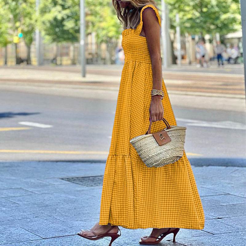 Fashionable Sleeveless Midi Plaid Dress