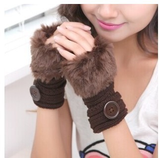 Faux rabbit fur warm fingerless wool winter knitted gloves women