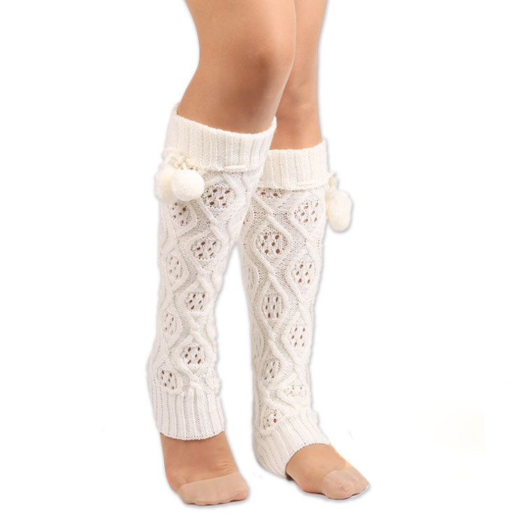Long Hair Ball Knee Pads Thick Warm Knitted Foot Cover