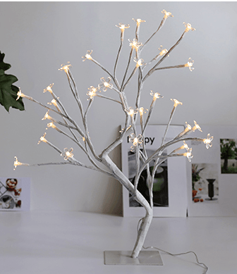 1. Bonsai style design, perfect for home decoration on the desk or table. Christmas tree light embellished by many warm white LED lights. Clear color flowers, brown stem and branches, more attractive than the real plant bonsai.