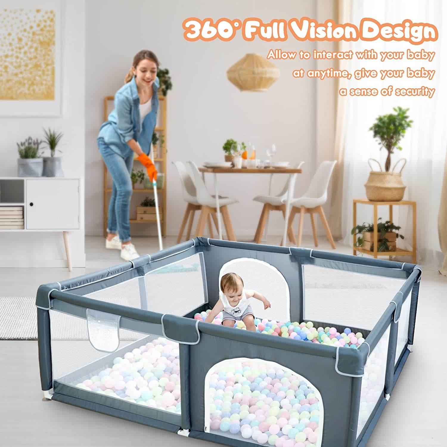 Large Baby Playpen79x71, Extra Large Play Pen For Babies And Toddlers, Play Yard With Gate, Baby Fence With Breathable Mesh, Safety Indoor & Outdoor Activity Center Grey