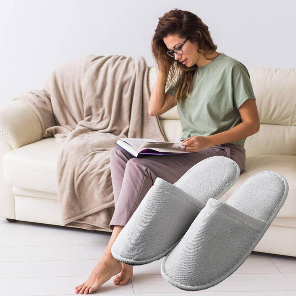 Fleece Slippers One Time Non Slip Thick Spa Slippers for Home Hotel Travel Party Guest