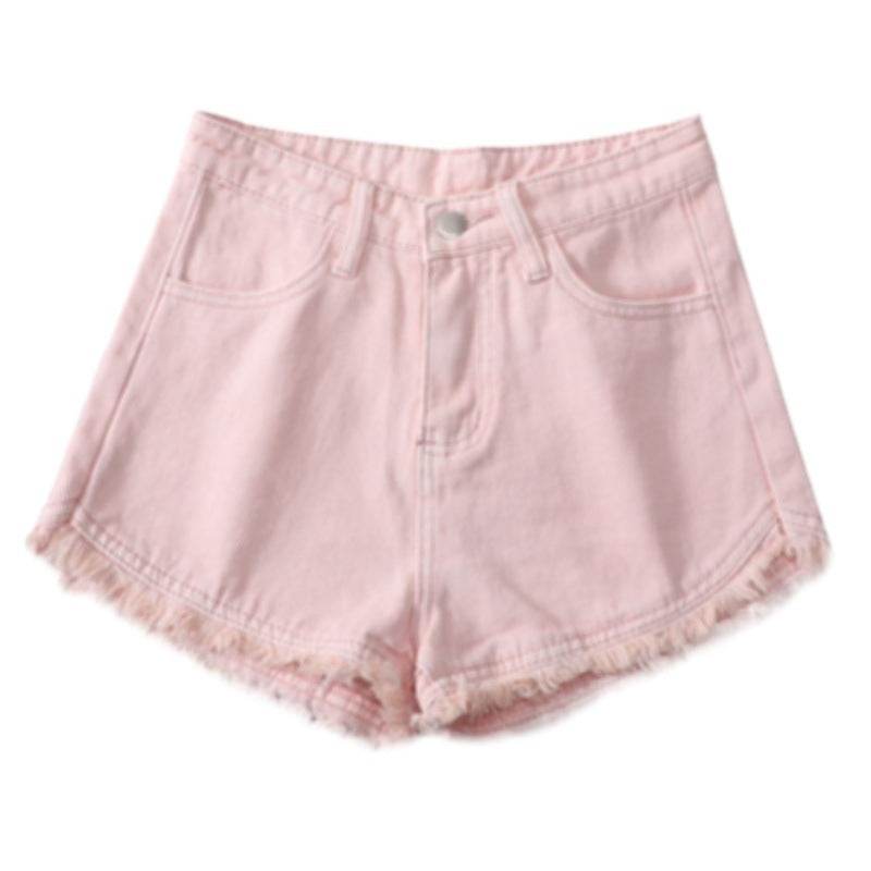 Pink High Waisted Denim Shorts For Women In Spring And Summer