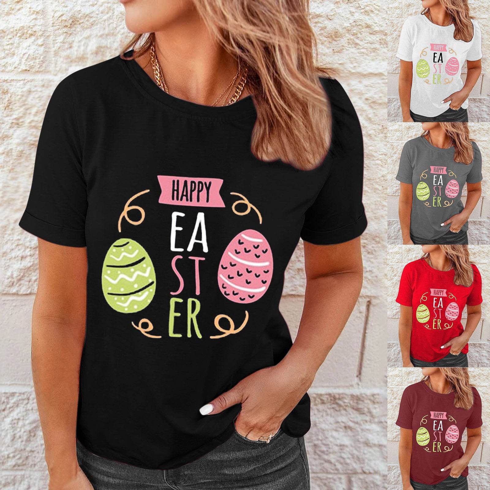 Shirts Women Easter Printed Casual Blouses Short Sleeve Tees