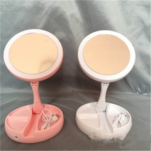 Miroir de maquillage Muid, portable, pliable, rouge, avec éclairage LED