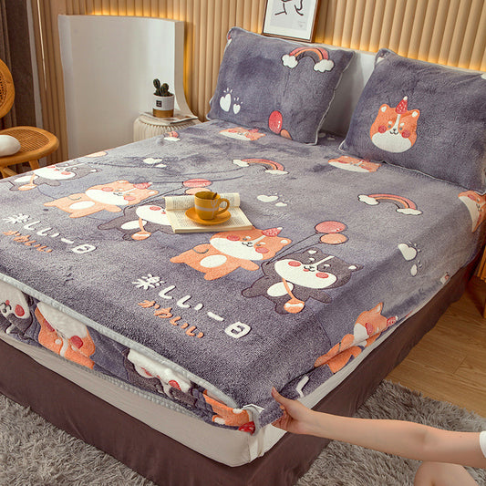 Home Fashion Double Velvet Non-slip Mattress Cover