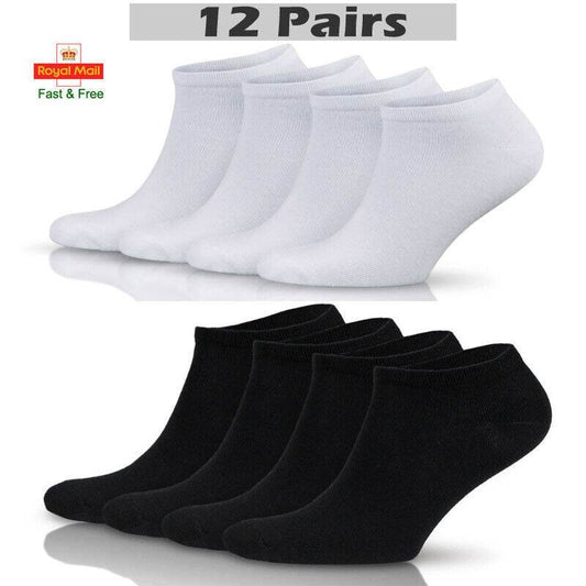 Lot de 12 paires de chaussettes de sport invisibles en coton pour homme et femme