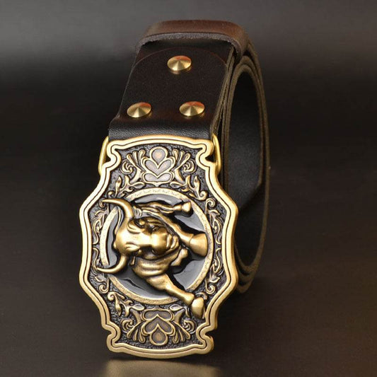 Ceinture pour homme avec boucle en cuivre et plaque en cuir de vache lisse