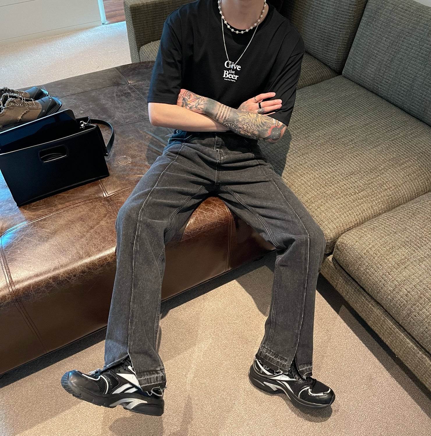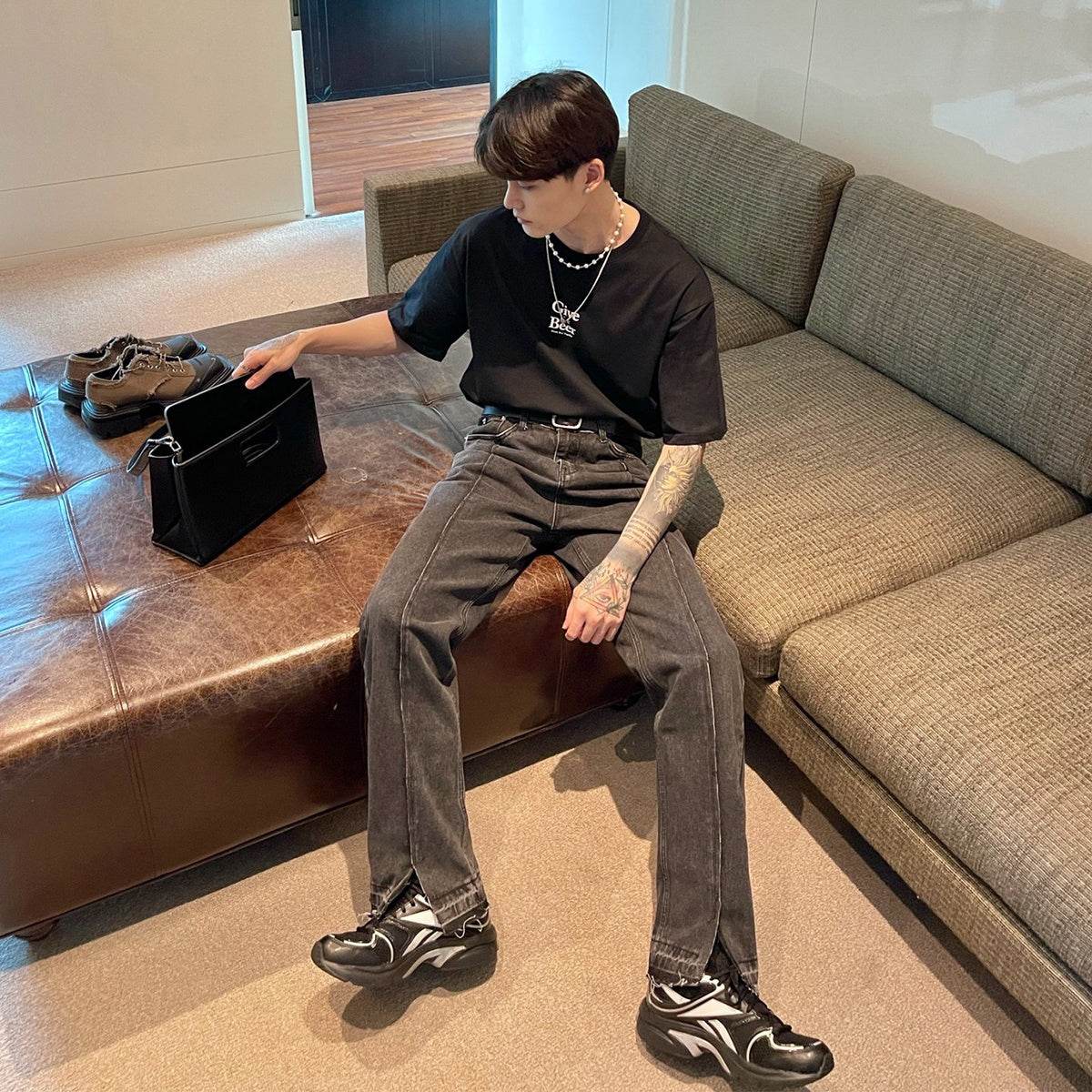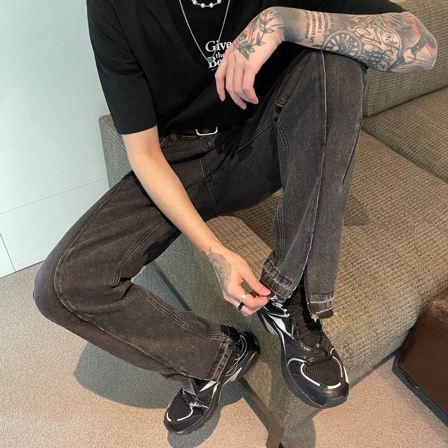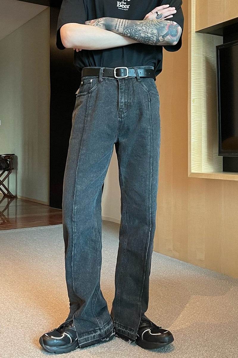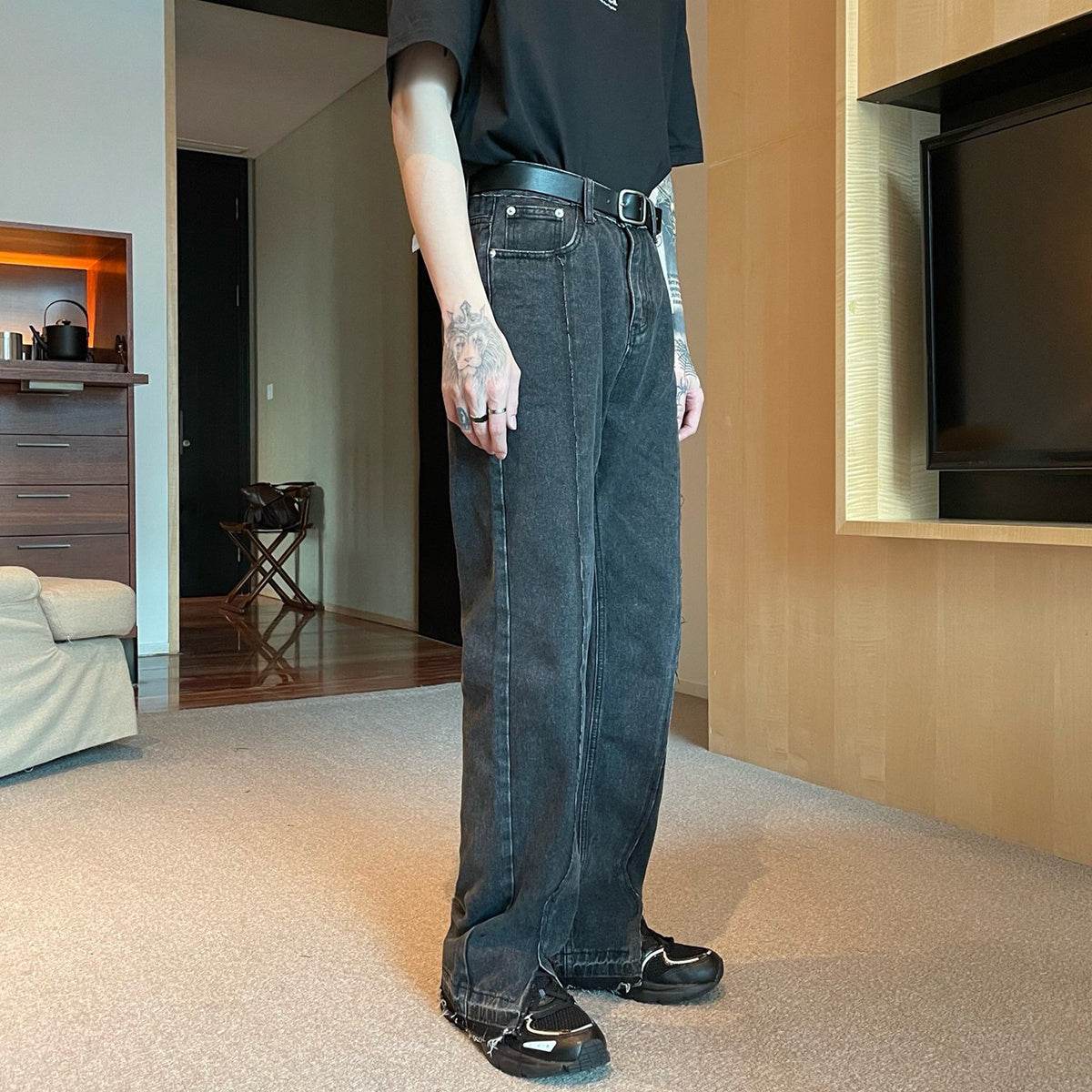 Jean droit fendu pour homme de marque Tide, pantalon large à bords bruts à l'ancienne