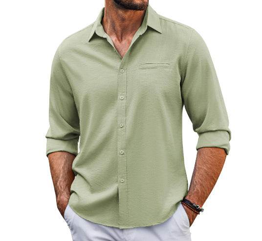 Chemise décontractée à manches longues avec poche, col polo en dentelle, couleur unie, boutons, vêtements pour hommes