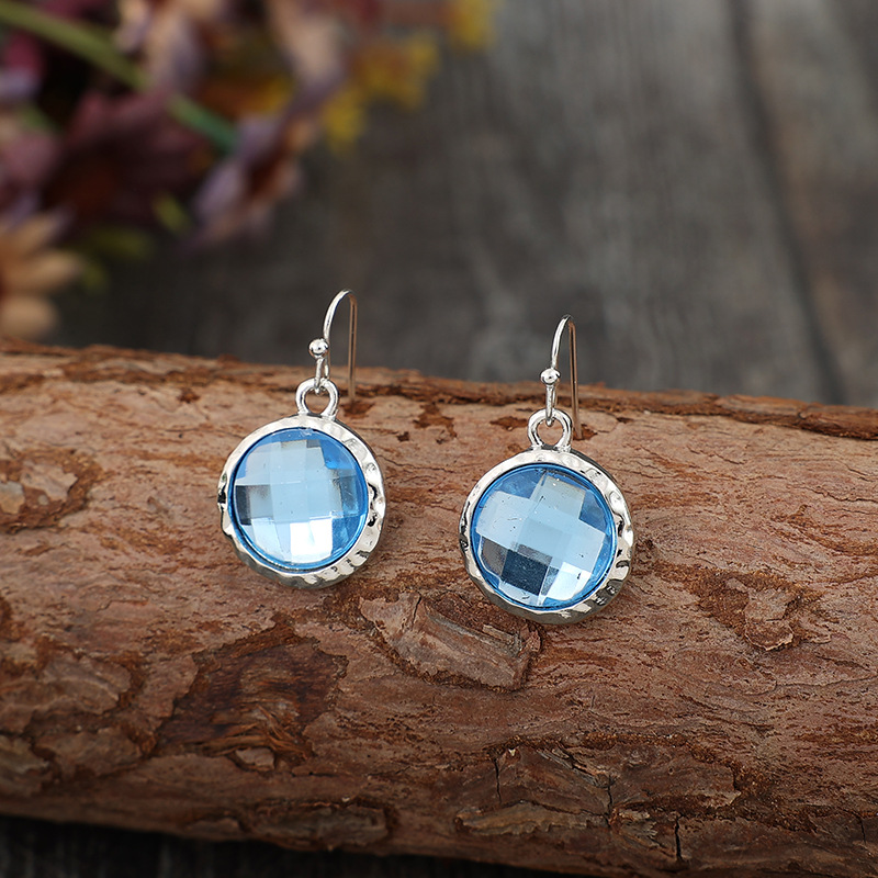 New Simple Elegant Style Silver Round Inlaid Blue Gem Metal Alloy Earrings