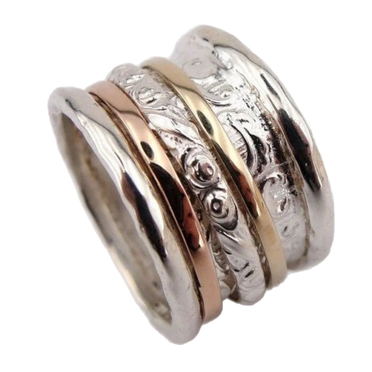 Retro With Patterns Two-color Electroplated Ring Luxury Exquisite Ring