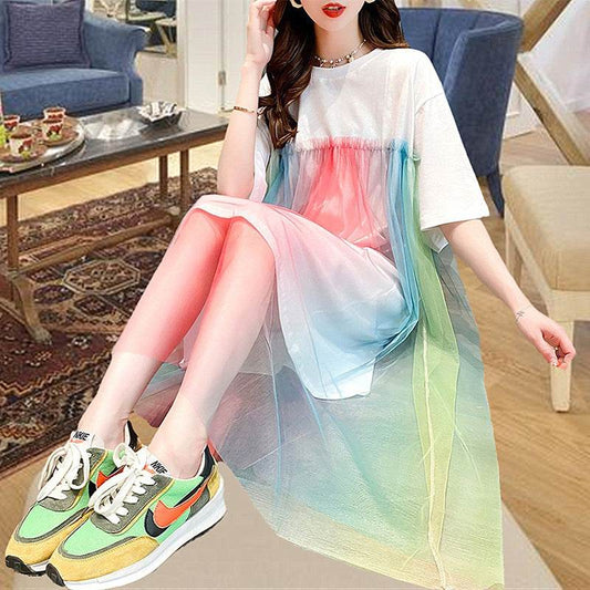 Robe trapèze grande taille à manches longues et imprimé coutures pour femme