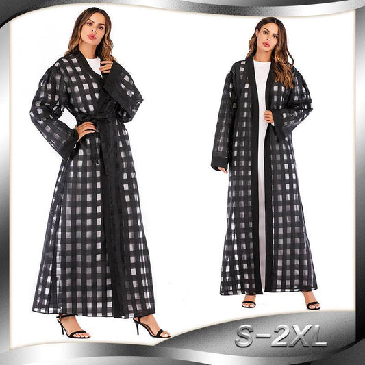Robe cardigan ample à manches longues en dentelle et maille pour femme