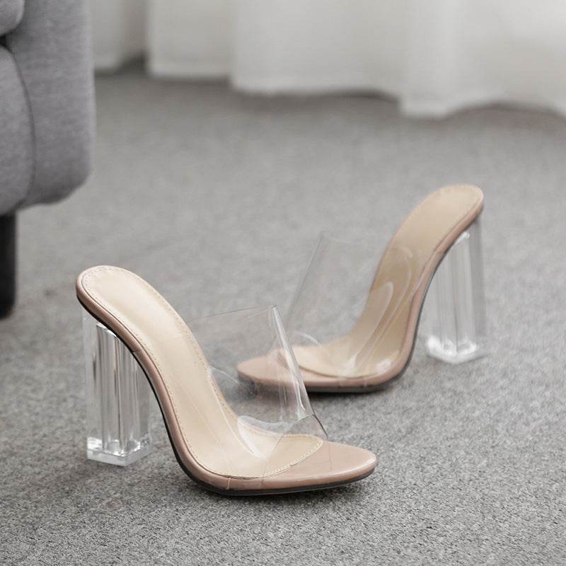 Escarpins à bout ouvert et bride arrière pour femmes, chaussures transparentes à talons hauts et sandales sexy