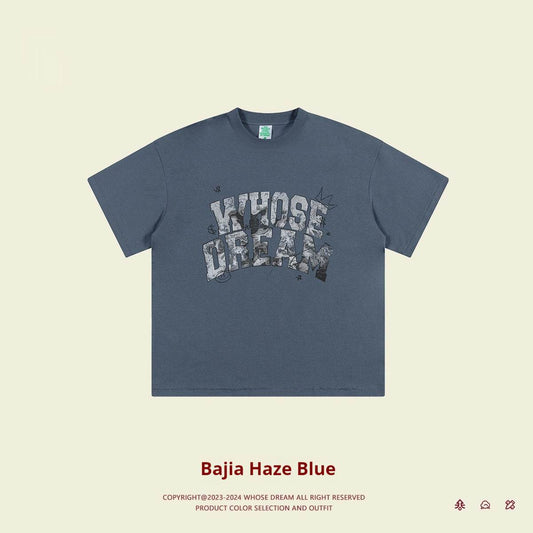 T-shirt décontracté pour femme avec imprimé lettre, blanc, noir et gris