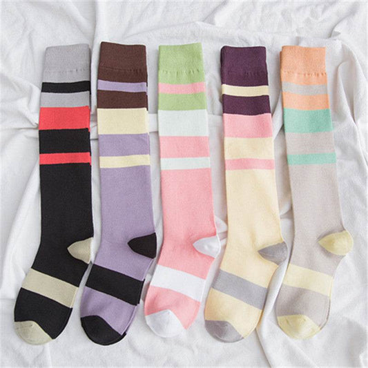 Chaussettes de sport à rayures style universitaire en coton jusqu'aux genoux