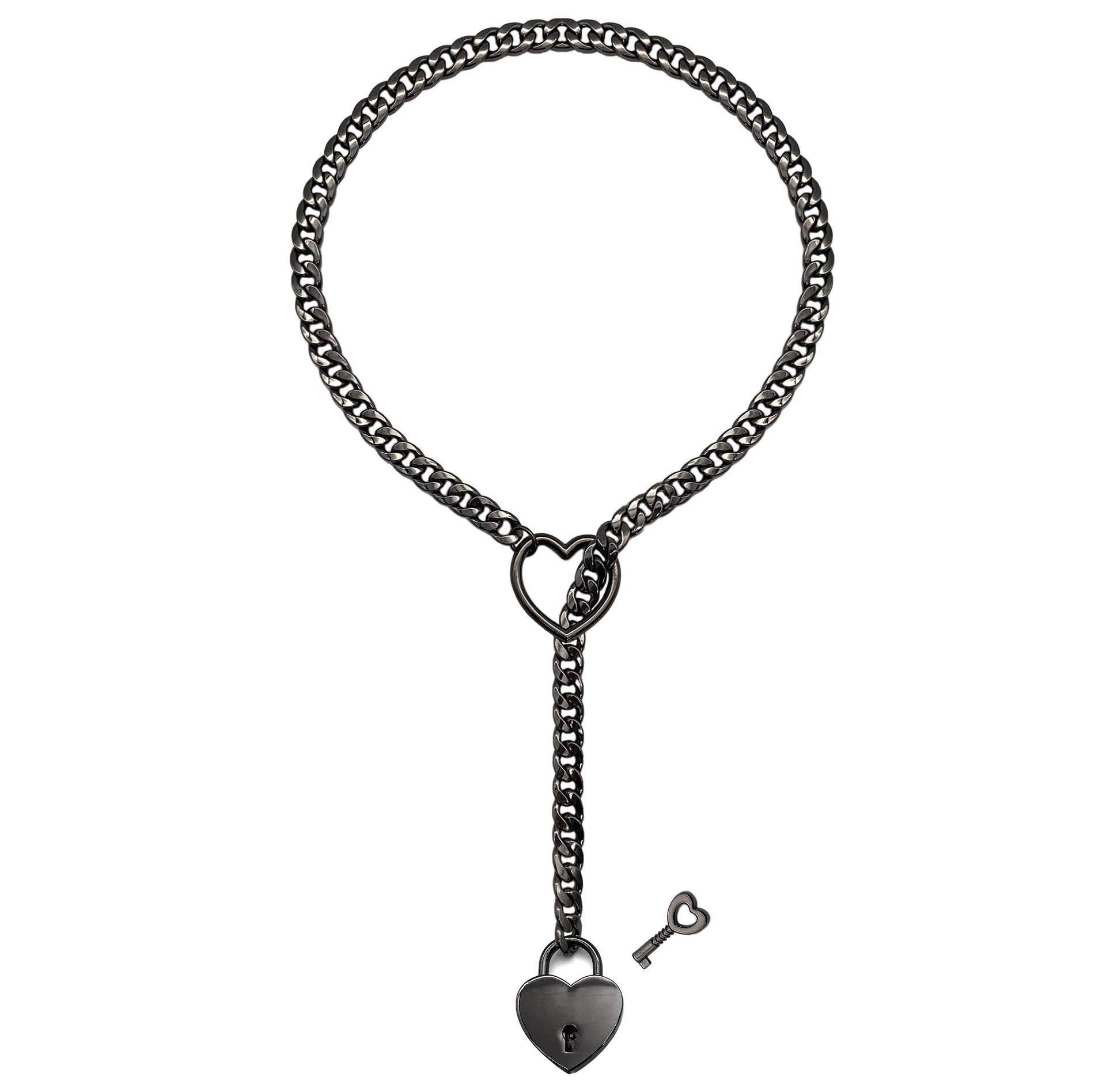Fashion Jewelry 2024 New Slip Chain Necklace Heart O-Ring Rock Cuban Long Necklace Adjustable Heart Shaped Lock Core With Key