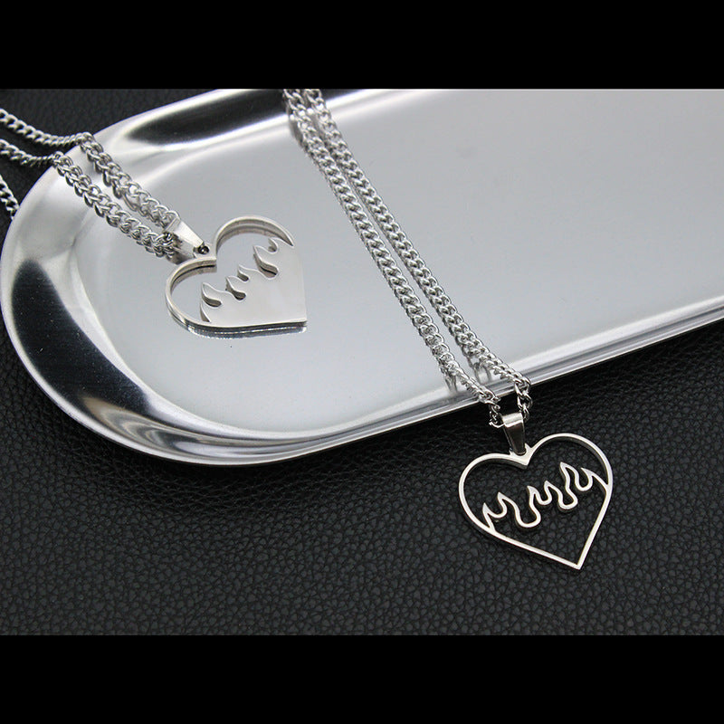 Love Flame Couple Necklace Jewelry Stainless Steel