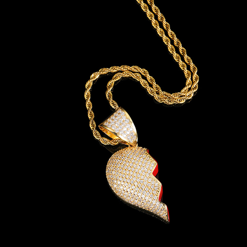 Two Half Heartbreak Combination Hip Hop Pendant Love Couple Necklace