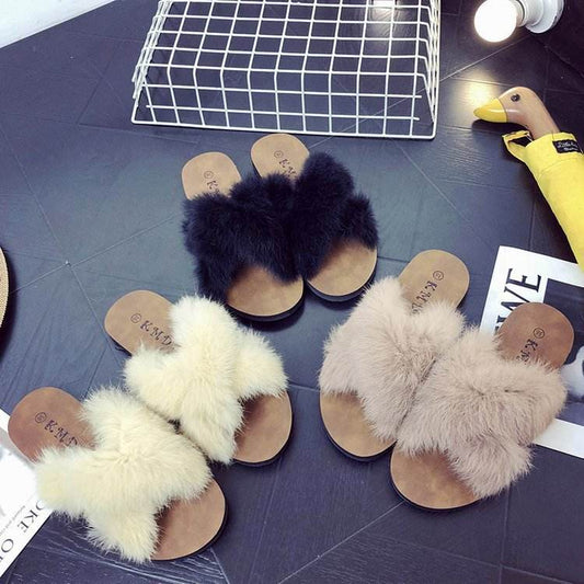 Spring New Fluffy Slippers Women's Summer Fashion Outerwear Flat Bottom Comfort - Mubimart