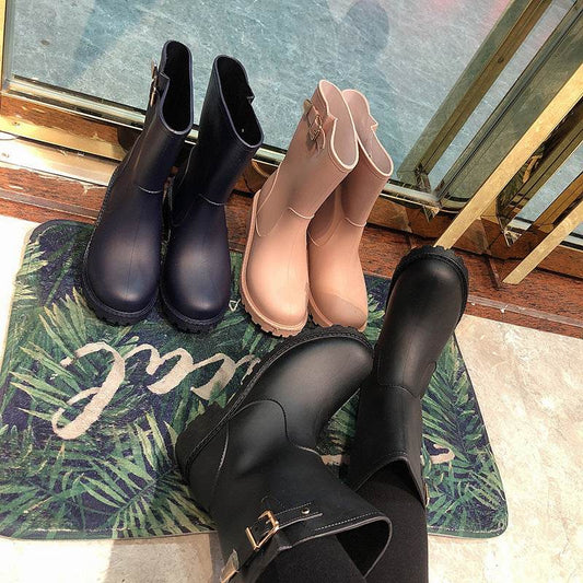 Fashion Temperament Non-slip Waterproof Shoes Rubber Rain Boots Women - Mubimart