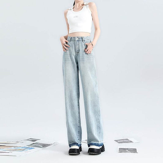 Jean brodé bleu XINGX pour femme, pantalon ample, coupe droite et large