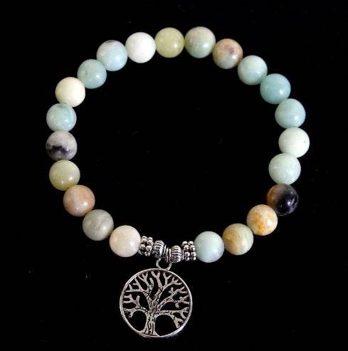 Matte Amazonite Stone Strand Bracelet Yoga Chakra Mala Bracelet OM Lotus Women Men Beaded Charm Bracelet Handmade Jewelry