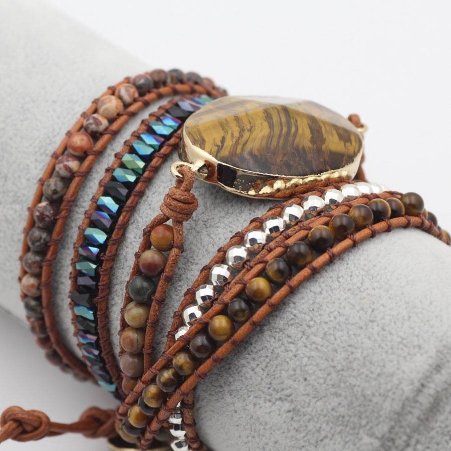 Natural Stone Bracelet for Men and Women Tiger Eye Beaded Hand-woven Leather Bracelet Punk Rock Couples Hand Accessories - Mubimart