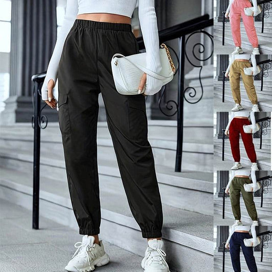 Pantalon cargo tendance et décontracté à poches multiples et taille élastique pour femme