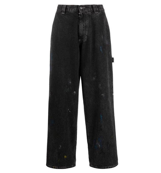 Pantalon cargo ample à motif de taches de peinture et d'encre pour hommes et femmes