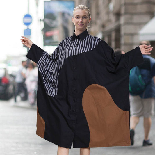 Robe chemise d'automne à simple boutonnage, couleur contrastée, style décontracté, ample, grande taille, pour femmes