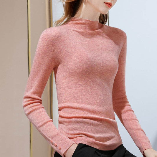Lady's Pullover Tops Plus Size Half-turtleneck T-shirt Bottoming Shirt - Mubimart