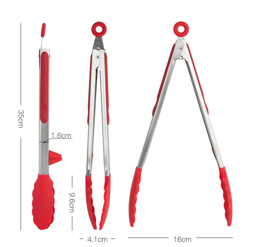 Household silicone food tongs stainless steel barbecue tongs - Mubimart