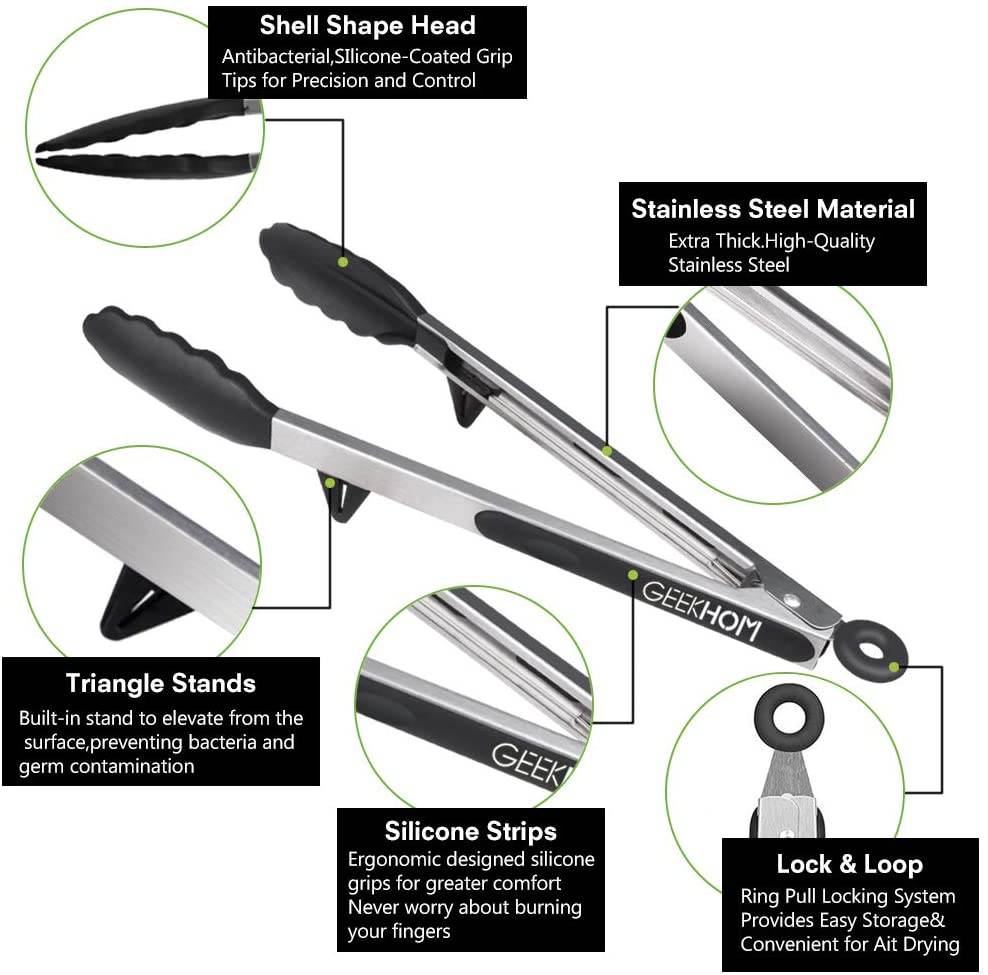 The non-slip handle ensures a firm grip, even with greasy hands, enhancing your cooking experience. The built-in locking mechanism allows for secure storage and added safety. Cleaning up is a breeze with these dishwasher-safe tongs, and their lightweight design makes them easy to maneuver for various cooking tasks.