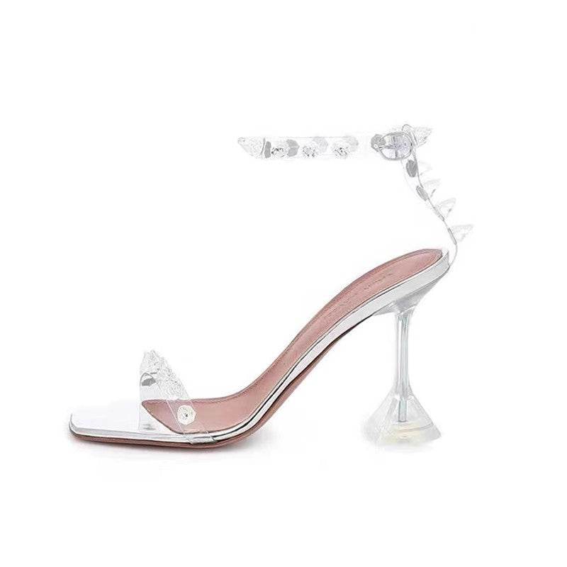 Transparent Rivet High Heels Ankle-strap Stilettos Crystal Heel